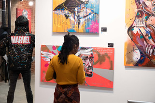 Each year, ARTBYJCON strives to produce unique events that highlight the brands grass roots in art, showcasing Javon Conaway's collection of paintings in unique environments. This process is achieved by utilizing settings and themes that participate in making the experience memorable, edgy and unconventional. With a gallery lended by New York City's Hi-ARTS, a non profit organization located on the upper east side, ARTBYJCON played with the rustic aesthetic of the space to bring a grittier theme to the overall exhibition. The artwork featured Conaway's bold and colorful works of art alongside his legacy collection of art, which took up the space's main walls. The exhibition also served as an extension for the ARTBYJCON retail concept as Conaway and team drenched the fashion side of the brand into the exhibit's story, using it as an opportunity to piece together a prototype of a bigger concept of retail/fashion for the brand in the pipelines. The fashion inspirations came from the "underground industry" with pops of bright colors layered with dark hues, reimagined vintage garments and Conaway's signature paint splatter.